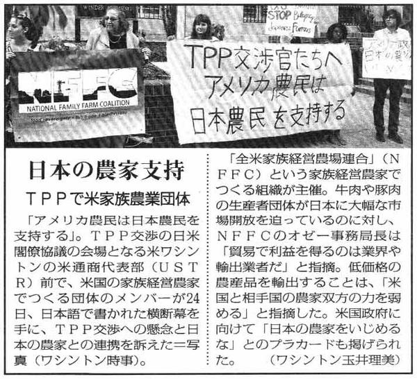 アメリカ農民は日本農民を支持する@日本農業新聞。
